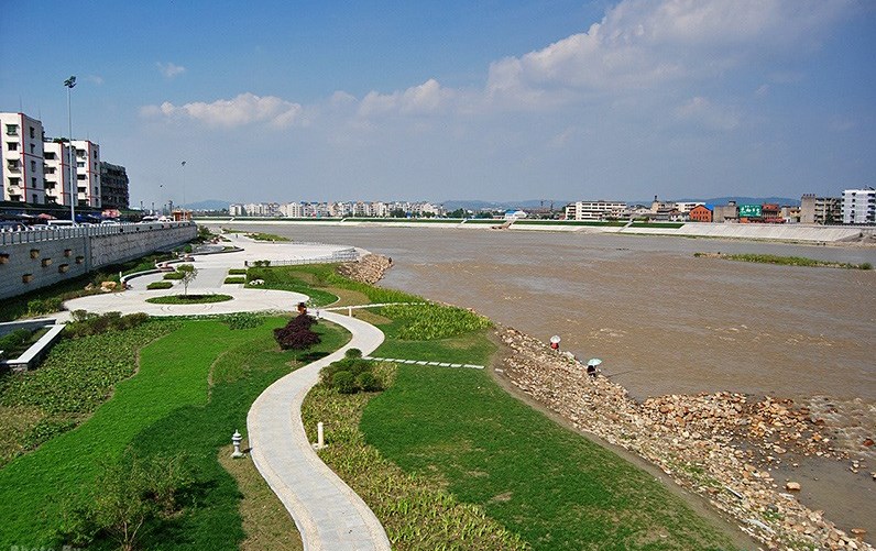 豫江大堤綜合治理工程是5.12大地震后河南省對口支援四川省江油市災后重建的重點項目之一,位于江油市區涪江一橋與二橋之間、一橋下游右岸及二橋上游部分河段。工程主要分防洪工程、生態修復工程、濱河景觀工程三部分,緊密結合江油災后城市重建規劃,實施后現已形成了“一軸、兩帶、兩核、三園”的生態景觀空間布局、正如《涪江?豫江大堤記》所鐫刻的那樣“今日豫江攜手,一堤澤被后世”,工程2010年5月12日竣工。