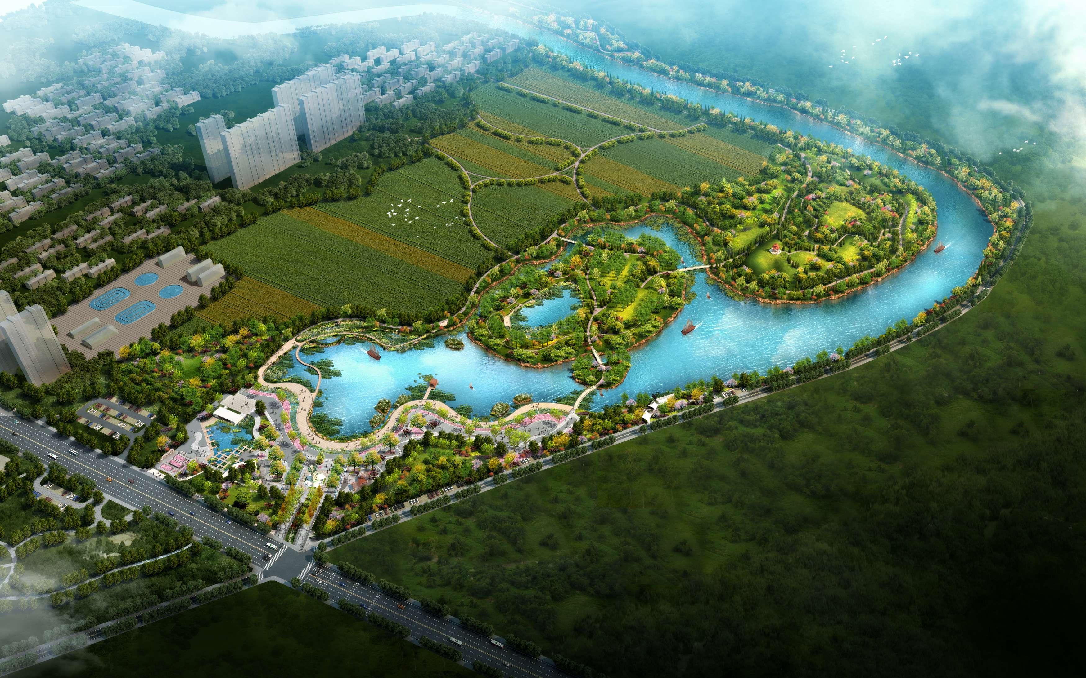 工程位于駐馬店市千年古縣、素有江北水城美譽(yù)的汝南縣,占地面積1438.19hm2,治理河道9條,總長(zhǎng)度64.24km,是融合水利工程、生態(tài)工程、景觀工程為一體的綜合性工程,總投資25億元,在城區(qū)形成“一軸、兩翼、三環(huán)、十園”水系景觀,突出古城、名寺、水生態(tài)的城市定位,實(shí)現(xiàn)全城水系連通,生態(tài)治理、景觀打造,按照一河一景、一段一文、傳承歷史文脈的要求,分段打造濱水景觀,形成“水在城中、城在園中、人在景中”移步換景、美不勝收的濱水休閑空間。
