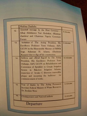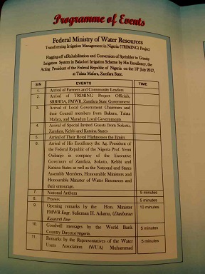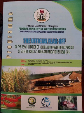 2017年7月18日,由尼日利亞聯(lián)邦政府向世界銀行貸款的Bakolori灌區(qū)項目開工典禮在工程現(xiàn)場隆重舉行。該項目受到了尼日利亞政府的高度重視,多位政要和當?shù)赝镣跚蹰L受邀參加典禮儀式。按照典禮議程,尼日利亞目前最高掌權(quán)人代總統(tǒng)Prof. Yemi Osibanjo出席開工典禮,講話并親自為工程開工剪彩,由于突發(fā)的暴雨天氣,代總統(tǒng)未能按照既定的時間到達現(xiàn)場。最后,由尼日利亞聯(lián)邦水資源部部長Engr. Suleiman Hussein Adamu主持典禮,并對該項目進行了開工儀式剪彩,世行官員、當?shù)卣數(shù)厍蹰L、農(nóng)民代表、咨詢方、承包商等參加了項目開工典禮。
