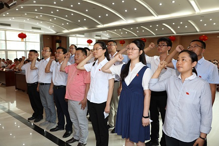 會議由公司黨委副書記、勘測公司總支書記、董事長趙健倉同志主持,黨委委員、設(shè)計(jì)公司總經(jīng)理朱太山同志宣讀了公司黨委表彰決定,工程規(guī)劃院黨支部等4個(gè)“五好”黨支部、楊華軍等35名優(yōu)秀黨員和任云峰等2名優(yōu)秀黨務(wù)工作者身披綬帶上臺領(lǐng)取了獎牌和榮譽(yù)證書;14名新黨員面對黨旗莊嚴(yán)宣誓;豫水國際黨支部的薛應(yīng)科、勘測公司的周子?xùn)|作為優(yōu)秀黨員代表在會上進(jìn)行典型發(fā)言;工程設(shè)計(jì)二院的申黎平、勘測公司張慶功作為新黨員代表進(jìn)行發(fā)言。