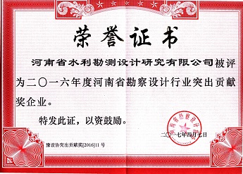 為樹立典型,表彰先進,進一步調(diào)動河南省全行業(yè)勘察設計人員的積極性,促進行業(yè)健康發(fā)展,河南省勘察設計協(xié)會開展行業(yè)突出貢獻、行業(yè)優(yōu)秀企業(yè)和行業(yè)優(yōu)秀院長的評選。我公司被河南省勘察設計協(xié)會評為“2016年度河南省勘察設計行業(yè)突出貢獻獎企業(yè)”,翟淵軍董事長再次榮獲“2016年度河南省勘察設計行業(yè)優(yōu)秀院長”。