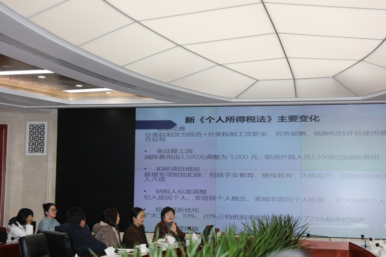 2019年1月3日下午,中華人民共和國個人所得稅法宣貫培訓會在公司二樓多功能廳舉行,邀請了河南誠裕稅務師事務所李愛娟副總經理進行培訓,財務部部長崔薇主持了會議,公司領導趙廷華及各生產院、各管理部門負責人等80多位員工參加了此次培訓。