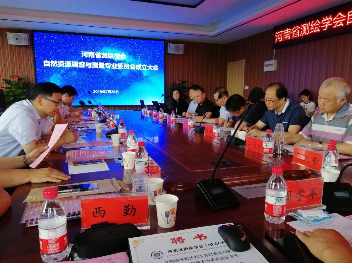 2019年7月20日,在焦作市河南省中緯測繪規(guī)劃信息工程有限公司,召開了河南省測繪學(xué)會自然資源調(diào)查與測量專業(yè)委員會成立大會。參加會議的專家學(xué)者有:信息工程大學(xué)、河南大學(xué)等五所高校專家教授、河南省測繪工程院等九家單位專家代表。會議還特邀航空攝影測量和遙感專業(yè)委員會主任委員,解放軍戰(zhàn)略支援部隊信息工程大學(xué)地理空間信息學(xué)院徐青教授參加。公司勘察院聶宗齋副總工參加了此次大會。