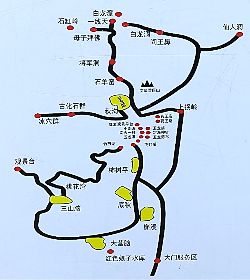 秋溝景區(qū)位于新鄉(xiāng)市輝縣南寨鎮(zhèn)境內(nèi),總面積14平方公里。景區(qū)三面環(huán)山,海拔800多米。景區(qū)內(nèi)山高林密,峽谷壁垂,主要有五龍峽、五龍?zhí)丁⒛咸煲恢⑿∧虾!⒓t色娘子水庫(kù)、桃花灣等景點(diǎn)。因?yàn)檫^(guò)去溝內(nèi)盡是楸樹(shù),故取名為楸溝,后簡(jiǎn)化為秋溝。