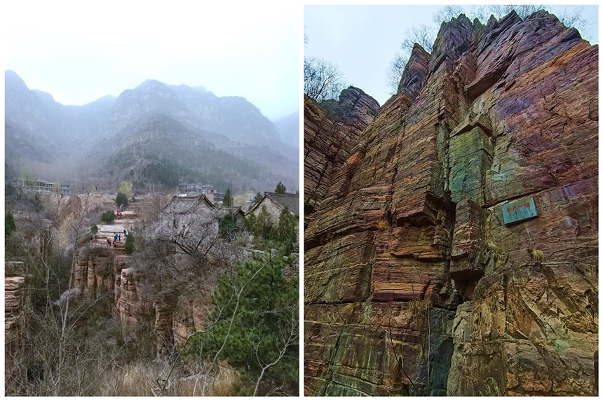 五龍峽兩側(cè)是高入云端、峻峭的紅崖,谷底是碧綠的池水,一處“飛虹橋”橫在水面上,別有一番景致。進(jìn)入谷底深處,前方一座直上直下的山峰“南天一注”屹立在谷底盡頭。大家沿著山體一側(cè)的“云梯”攀升,經(jīng)過(guò)“定海神針”、“小南海”、“系情谷”等景點(diǎn),一直來(lái)到紅色娘子水庫(kù)大壩處,最終到達(dá)山頂平臺(tái)。
