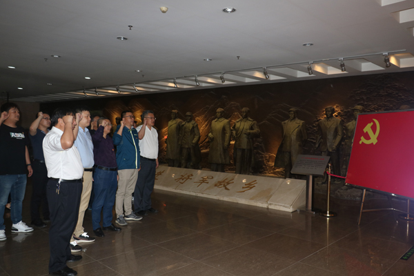 在鄂豫皖革命紀(jì)念館,大家懷著無比崇敬的心情瞻仰和聆聽了鄂豫皖地區(qū)革命先烈前仆后繼、英勇戰(zhàn)斗的光輝事跡。在鮮紅的黨旗下,大家重溫了神圣而莊嚴(yán)的入黨誓詞;在確山縣竹溝革命紀(jì)念館,大家被革命先賢們“為有犧牲多壯志,敢教日月?lián)Q新天”的英雄氣概深深震撼;在莊嚴(yán)肅穆的竹溝革命烈士陵園,大家緩緩拾級(jí)而上,深切緬懷革命先烈,并以三鞠躬形式表達(dá)對(duì)革命先烈的崇高敬意。