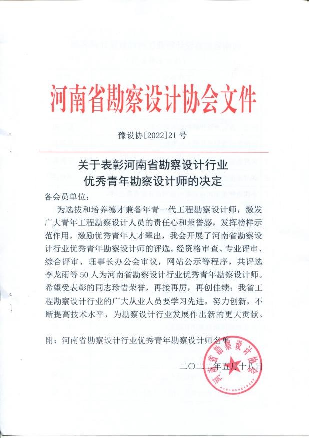 2022年河南省工程勘察設(shè)計行業(yè)協(xié)會表彰文件