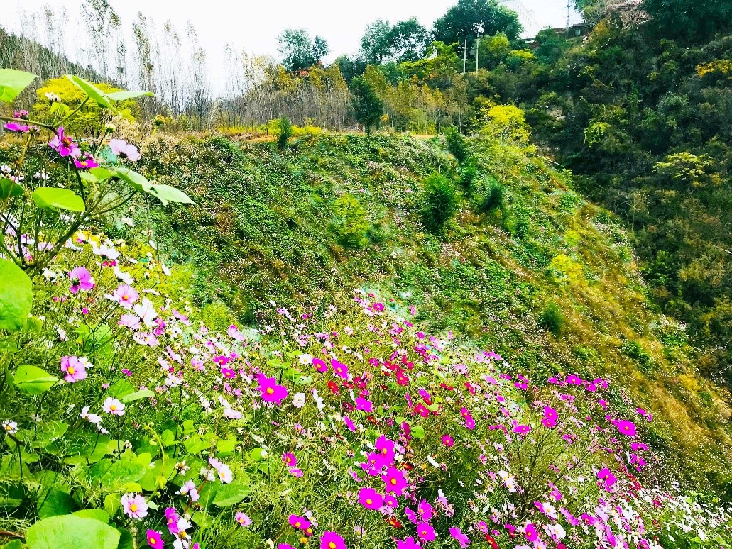 經(jīng)過生態(tài)修復(fù),巖石裸露的山坡恢復(fù)了綠意,同時(shí)也極大的減緩了水土流失,明顯改善了庫區(qū)周邊的生態(tài)環(huán)境。治理后的山坡形成一片綠色和生氣盎然的景象,多層次植物群落的搭配,特別是本土植物群落的采用,與周邊原生環(huán)境達(dá)到了合諧共生的目標(biāo)。