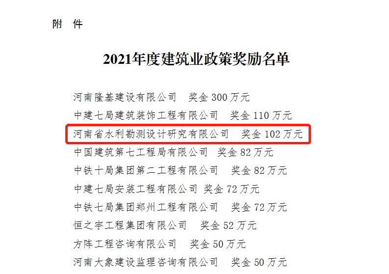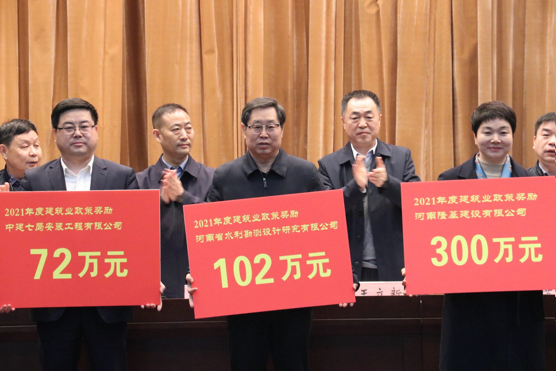為推動鄭州市建筑業高質量發展,會上對2021年取得突出業績的103家建筑企業進行獎勵,公司喜獲102萬元。