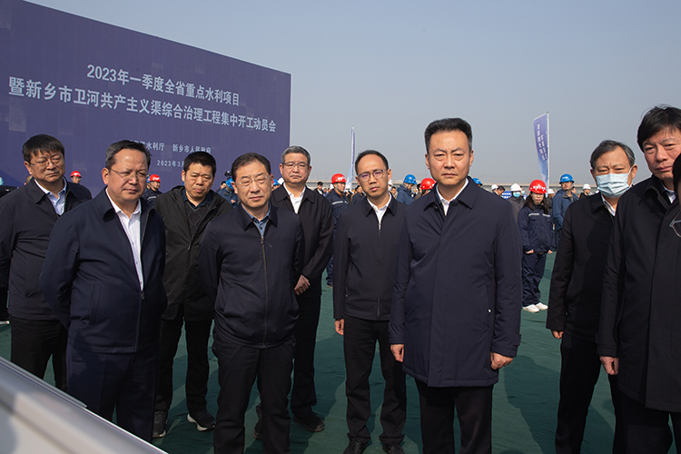 3月21日,2023年一季度全省重點水利項目暨新鄉(xiāng)市衛(wèi)河共產(chǎn)主義渠綜合治理工程開工動員會在新鄉(xiāng)衛(wèi)輝召開。省政府副省長楊青玖出席開工儀式并下達(dá)開工令。省水利廳廳長申季維、新鄉(xiāng)市委書記李衛(wèi)東、河南水投集團(tuán)黨委書記、董事長楊繼成出席,省水利廳副廳長祝云憲主持。