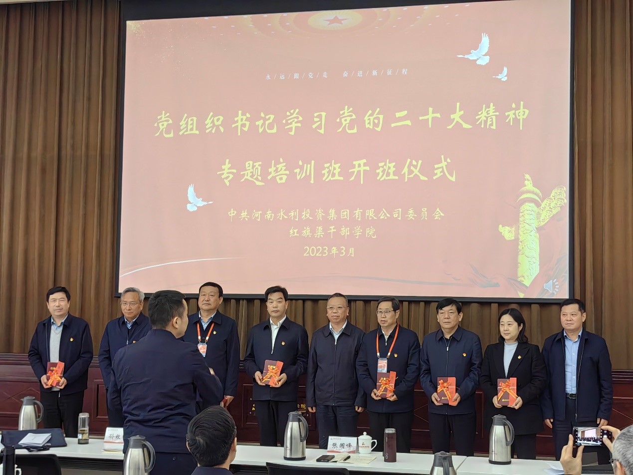 為深入學習貫徹黨的二十大精神,深刻把握黨的二十大報告核心要義、精神實質和重大部署,進一步加強基層黨組織建設,提升基層黨組織書記做好新形勢下黨建工作和思想政治工作的能力水平,河南水投集團公司黨委于3月23日-3月27日在紅旗渠干部學院舉辦基層黨組織負責人學習黨的二十大精神專題培訓班。公司黨委書記、董事長翟淵軍帶領趙廷華、馮光偉、袁榆梁等領導參加了培訓。