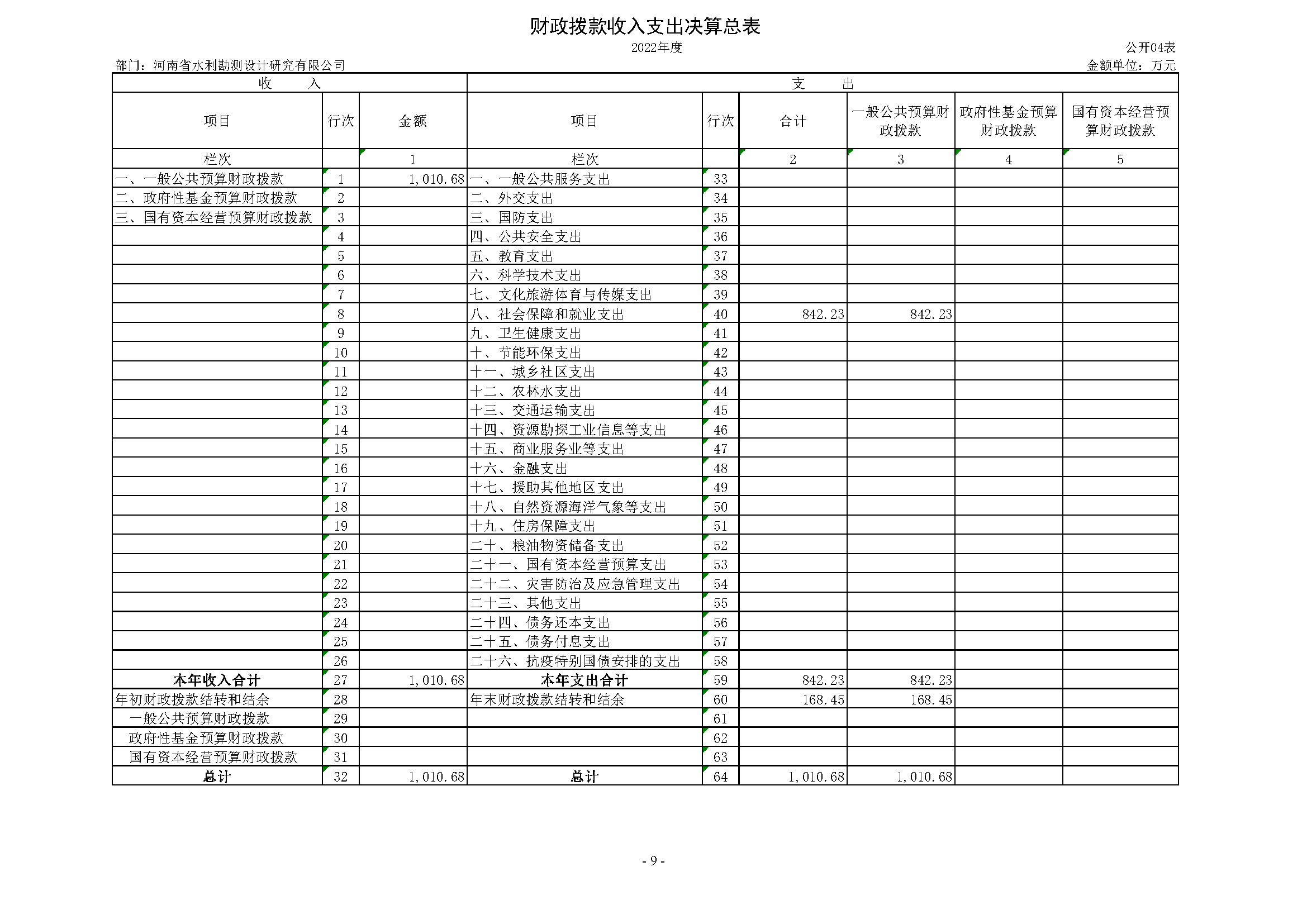 2022年度河南省水利勘測設計研究有限公司部門決算