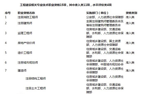 與工程建設相關的共22項,其中,專業技術人員職業資格15項,技能人員職業資格7項,具體見下表。