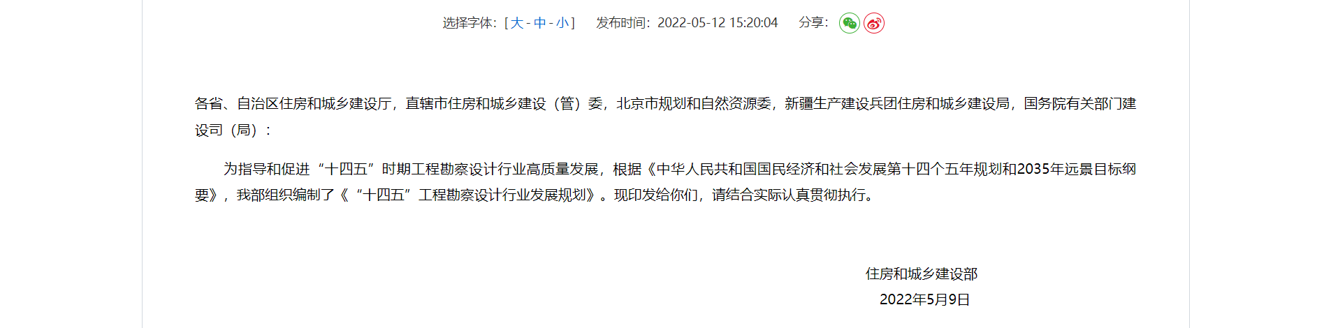 為指導(dǎo)和促進(jìn)“十四五”時期工程勘察設(shè)計行業(yè)高質(zhì)量發(fā)展,住房和城鄉(xiāng)建設(shè)部近日印發(fā)了《“十四五”工程勘察設(shè)計行業(yè)發(fā)展規(guī)劃》。