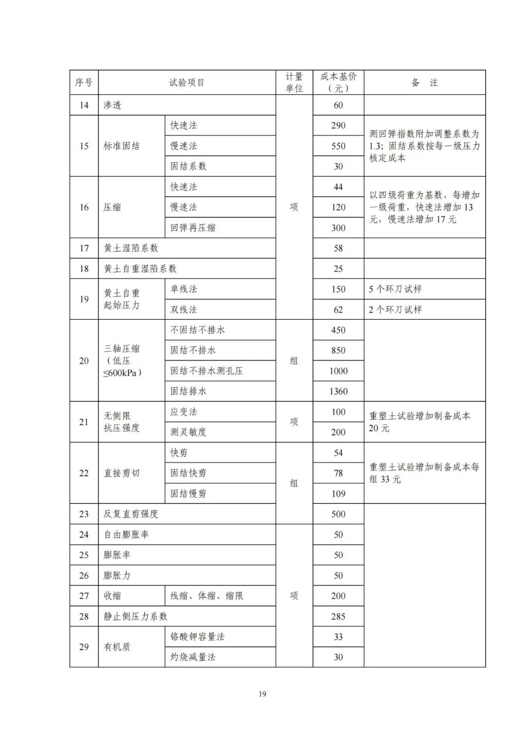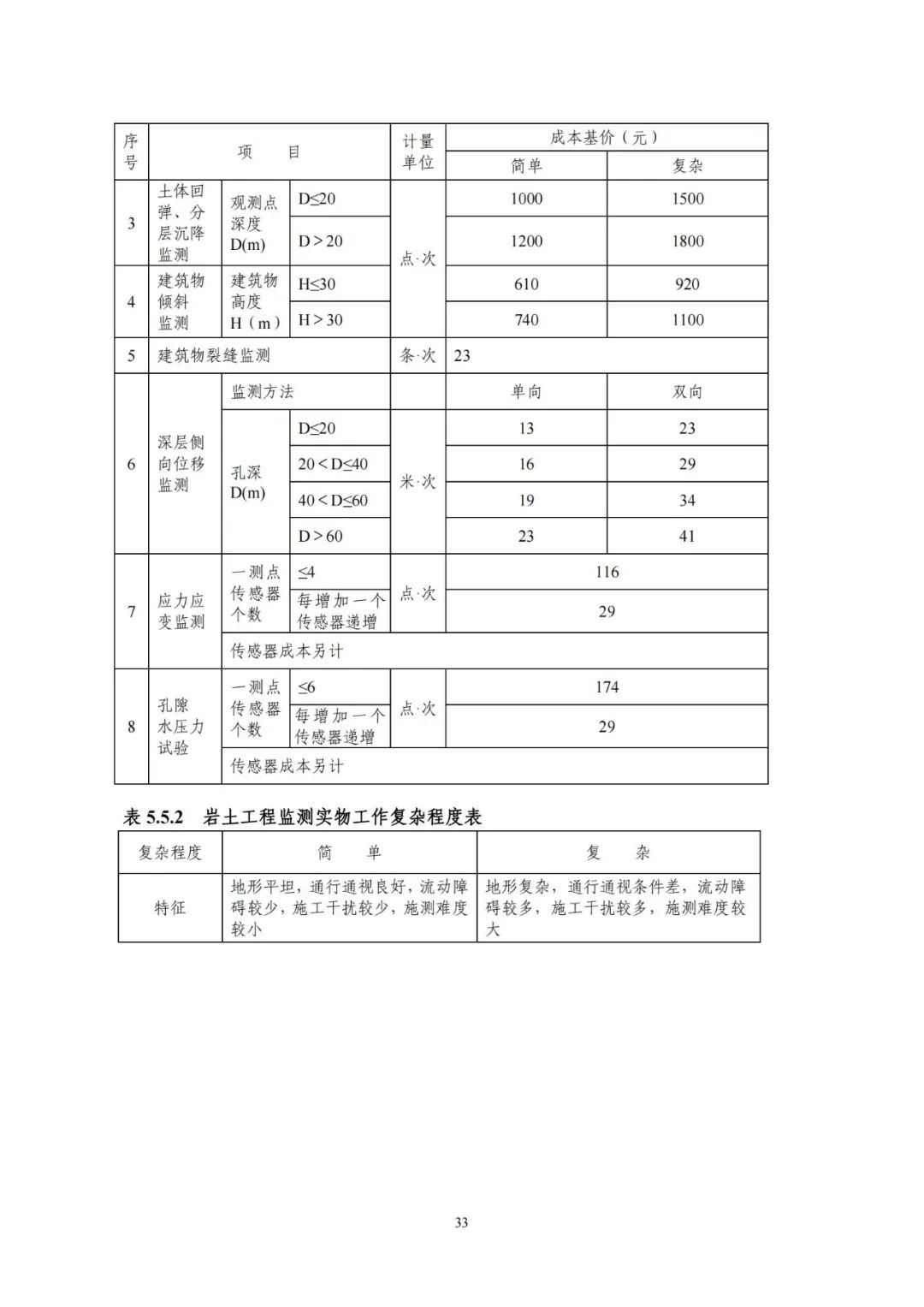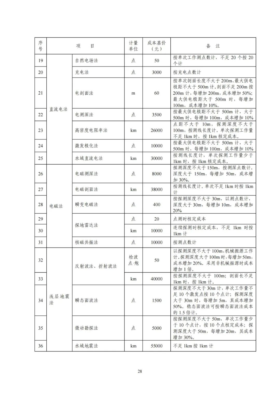 《要素信息》分為八章,相關成本測算分為工程費法(其包含巖土工程勘察、巖土工程勘察咨詢與監理、巖土工程設計和專業工程咨詢)、實物工作量法(其包含工程地質測繪與遙感地質解譯、巖土工程勘探與取樣、巖土工程試驗/檢測與監測、工程測量、水文地質勘察)及人工日法三類。除傳統的巖土工程試驗、測試和工程測量項目外,實物工作成本包括了土的易溶鹽及導熱系數等室內試驗、多功能數字式孔壓靜力觸探試驗、溫度測量等工程物探、海洋和內陸水域測量、無人機航空攝影測量、地面三維激光掃描測量、規劃測量等以新技術方法為主的專業技術服務項目。