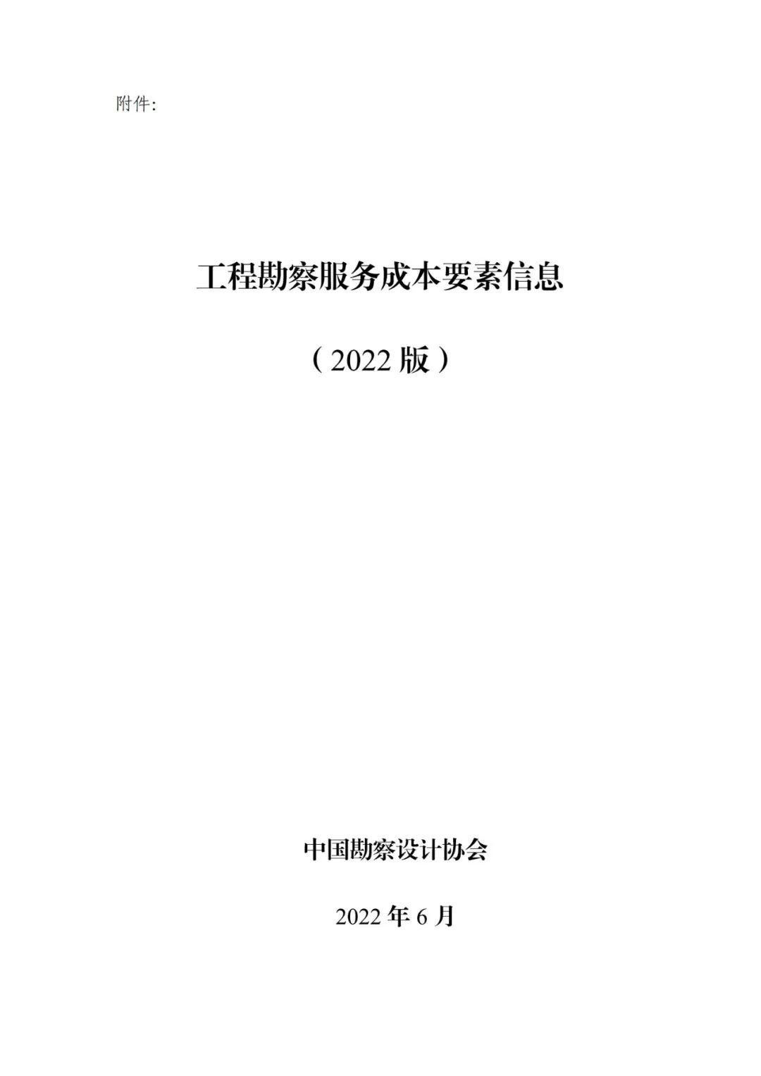 近日,中國勘察設計協會印發《工程勘察服務成本要素信息(2022版)》。