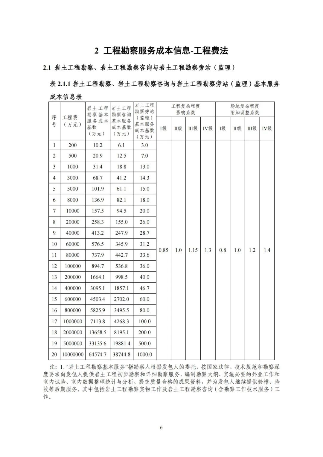 《要素信息》在對全國范圍2014-2020年工程勘察服務成本要素信息進行專項調查的基礎上,進行了統計、測算和分析。針對工程勘察市場現狀并結合不斷發展的行業服務需求,收集整理了工程勘察企業提供的巖土工程和工程測量專業技術服務內容、服務收入、服務項目人力資源要素配置、與工程費相對應的基本服務成本(含稅金)、巖土工程與工程測量的各類實物工作成本等大量生產要素數據信息,采集的數據在工程勘察行業具有較為廣泛的代表性。