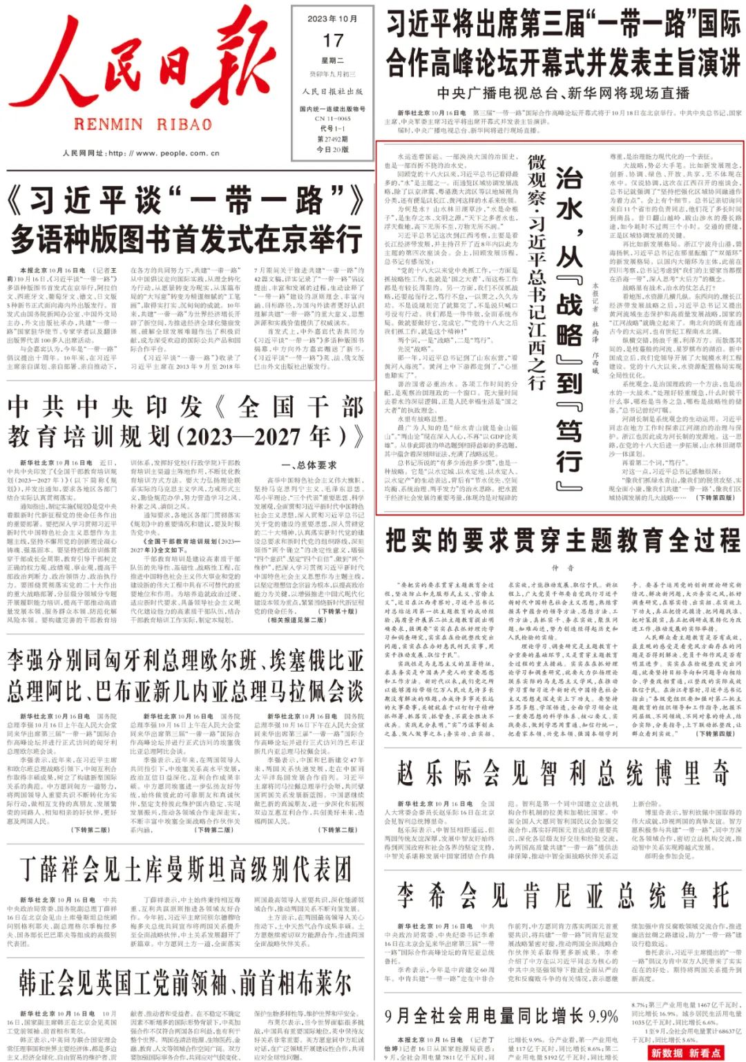 善治國者必重治水。各項工作時間的分配,是觀察治國理政的一個窗口。花大量時間去看水的深層邏輯,正是人民幸福生活是“國之大者”的執政理念。